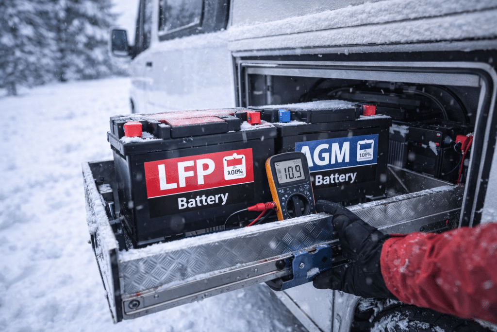 Cuando bajan las temperaturas, la autonomía eléctrica deja de ser una cifra redonda y pasa a ser un sistema donde todo se conecta: química de la batería, manera de cargar, secciones de cable, pérdidas en reguladores e inversores y, sobre todo, hábitos de uso (calefacción, iluminación, nevera, electrónica). En verano, los errores se perdonan; en invierno, no. Por eso, queremos darte método para elegir bien entre baterías AGM y LFP, instalarlas con criterio, interpretar lo que te dicen los instrumentos y predecir cuántas horas reales tienes… sin sorpresas.