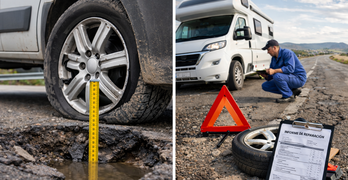Un bache no entiende de planes. Puede pillarte en una comarcal camino de una obra, en una travesía urbana con prisas o en ese enlace de autovía donde vas “en modo piloto automático”. A veces ni siquiera es un socavón puntual: es un tramo entero con el firme cansado, parcheado, con escalones, grietas o hundimientos que te van “martilleando” la suspensión hasta que algo dice basta. El resultado suele ser parecido: golpe seco, vibración rara, aviso de presión o el volante descentrado… y un taller que empieza por neumático/llanta, y a veces sigue con alineación o piezas de dirección y suspensión. En una camper, además, el peso y el reparto de carga hacen que el impacto se traduzca con facilidad en una factura más seria que la de un turismo. En una furgo profesional, el daño no sólo duele por la reparación: duele por el tiempo parado, por el curro que se cae y por la sensación de que “nadie responde”.
