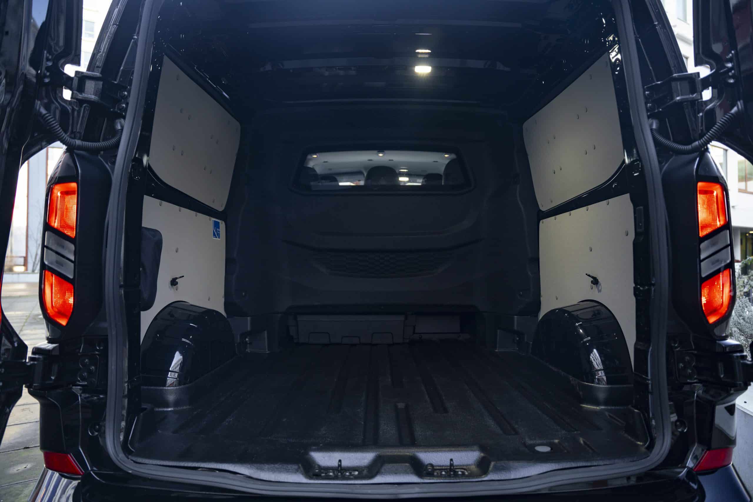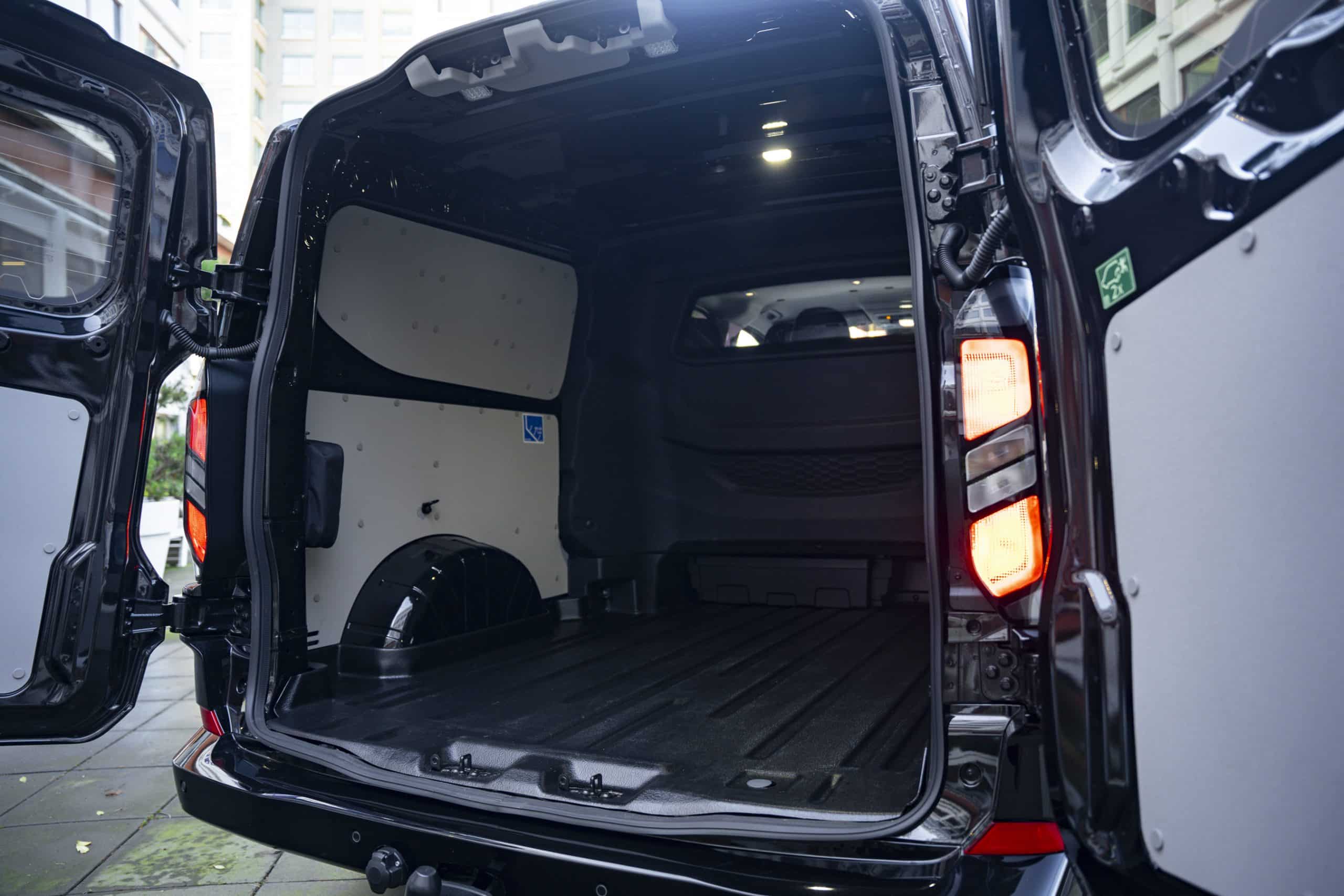 La zona de carta sigue siendo el corazón del Transit Custom. La altura útil H1 de 1.433 mm, la longitud de carga de ~3.450 mm en L2 y los puntos de amarre bien distribuidos facilitan organizar mercancía sin sorpresas. El iluminado LED de carga y los revestimientos disponibles evitan golpes y mejoran la visibilidad al final del día. En carga útil, la Custom se mueve en el entorno de 1,3 t (según versión y MMA), y en remolque alcanza 2,8 t en diésel y 2,3 t en PHEV/EV, algo que la distingue entre sus equivalentes electrificados. Frente a sus rivales directas, empata en volumen, pero marca diferencia por AWD en diésel y por el combo bomba de calor + DC 125 kW en EV.