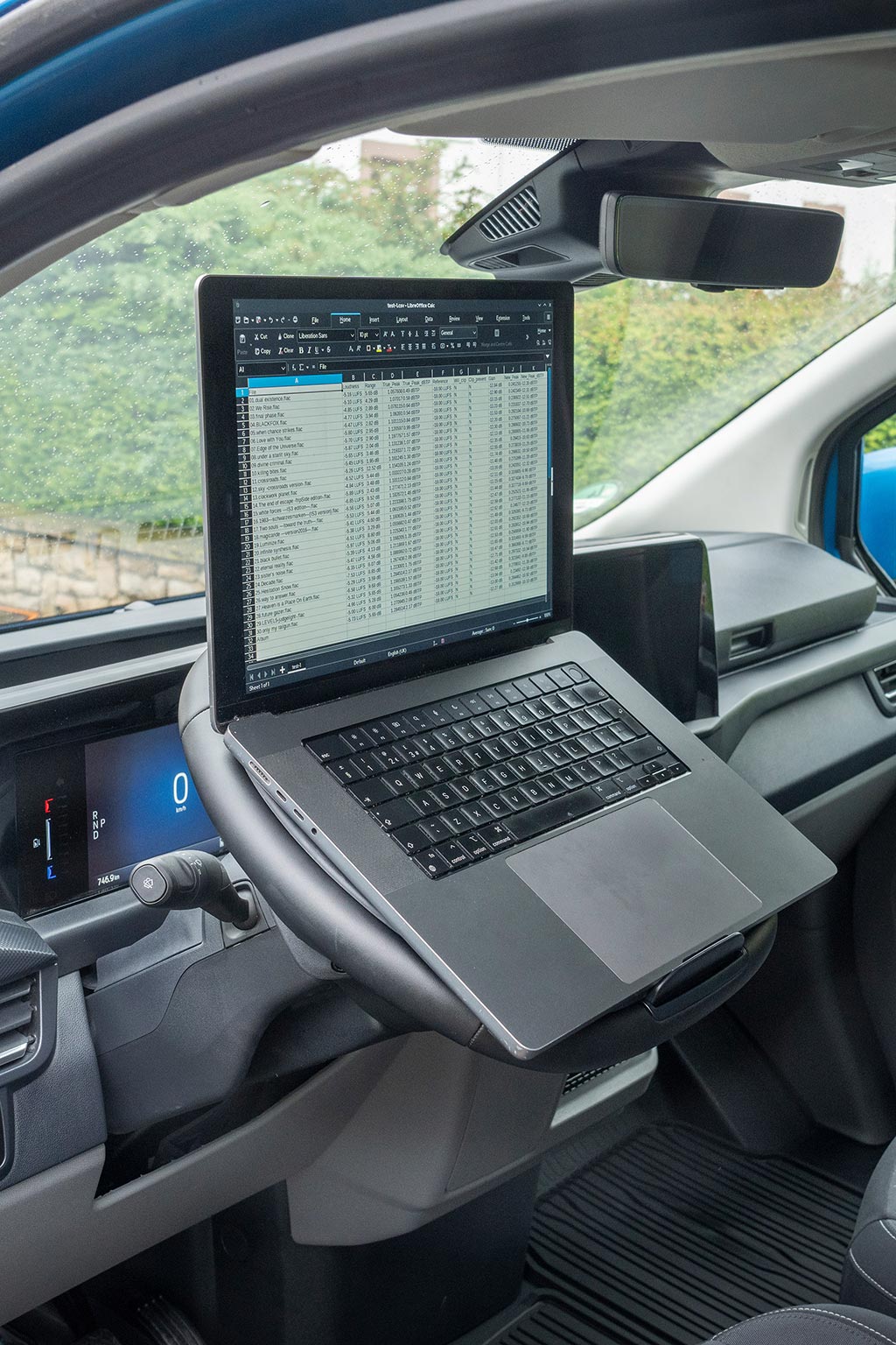 Por dentro, la cabina deja de ser un mero asiento entre rutas. Los asientos sostienen mejor en turnos largos, hay huecos de estiba cerrados y abiertos para herramientas, tablets y EPIs, y el airbag de pasajero en techo libera espacio útil delante. El volante abatible se transforma en mesa estable para el portátil o los albaranes, y el salpicadero integra tomas USB‑C, 12 V y, según versión, 230 V. El sistema SYNC 4 (13”) con 5G y OTA dialoga con Ford Pro: localizas vehículos, planificas mantenimientos, ajustas ventanas de carga (EV/PHEV) y recibes actualizaciones sin pisar taller. La insonorización y el aislamiento térmico se han trabajado para que la jornada cansen menos; a la larga, eso también es productividad.