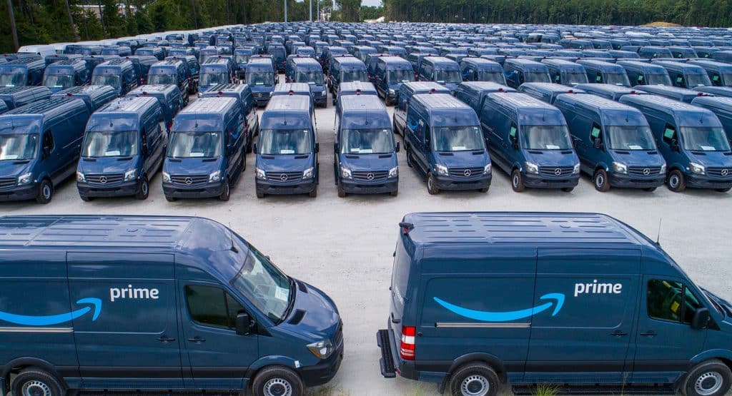 - Los vehículos más habituales son las furgonetas tipo Mercedes-Benz Sprinter o eVito (eléctrica), con branding oficial de Amazon.