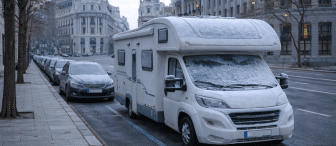 Aparcar (y pernoctar) con camper o caravana en invierno: guía legal, práctica, de climatización… y multas